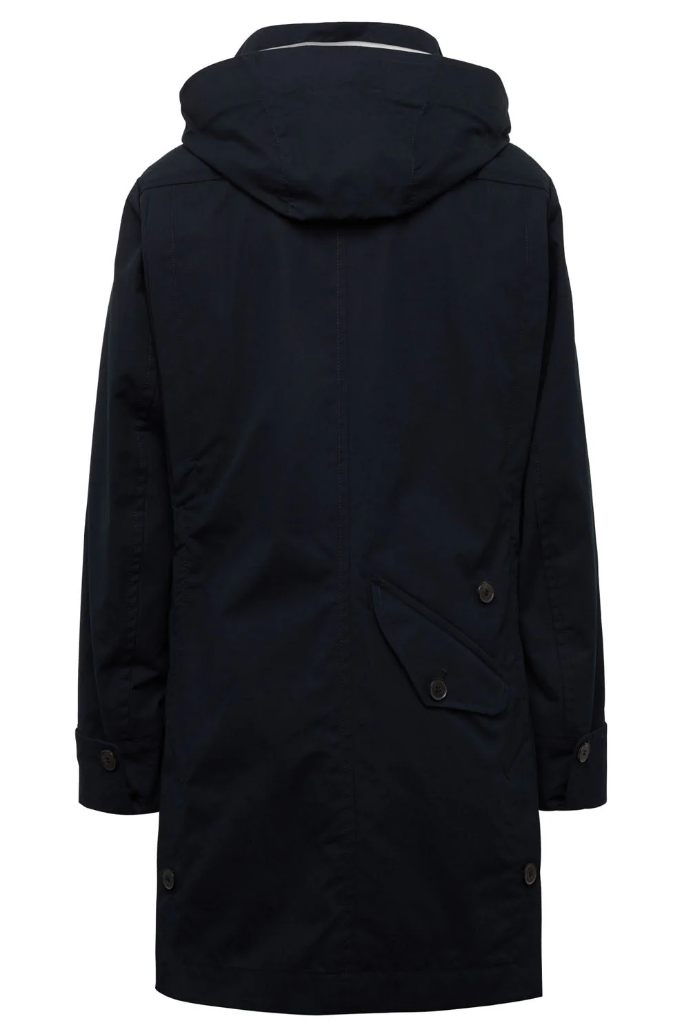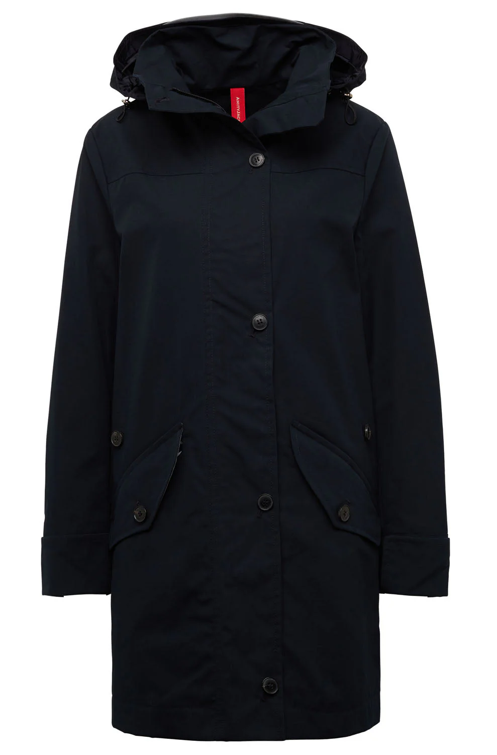 Nuestra parka también protege de forma fiable contra el viento y las inclemencias del tiempo. Con la parte inferior adecuada (merino, plumón ligero, etc.) se puede llevar incluso en temperaturas extremas. La capucha con cremallera compatible con casco, el cuello alto y la solapa protectora sobre la cremallera bidireccional hacen el resto. Sin capucha, se puede llevar como abrigo recto y clásico.
