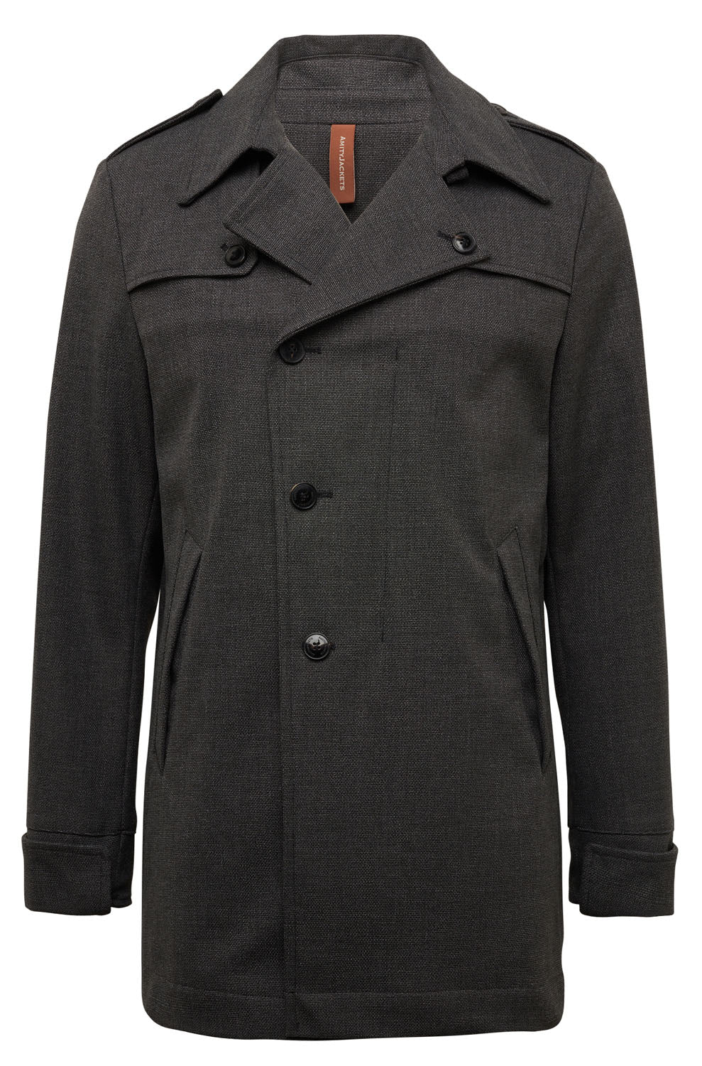 El clásico trench fue la inspiración para nuestro abrigo corto Franz, ideal para la ciudad. Esto se refleja en el frente asimétrico y protector, que recuerda al clásico traje cruzado.