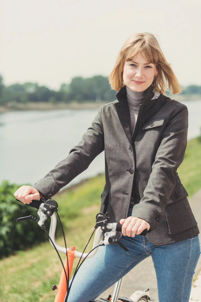 Inteligente y funcional, práctico y elegante. Nuestro blazer Paulina ofrece lo mejor de dos mundos diferentes. Con los detalles habituales de nuestra colección: impermeable, regulador de temperatura. Para los días más fríos, fabricado con el tejido funcional C-Change, un poco más pesado, para el rendimiento diario en bicicleta, de paseo, de camino a la fiesta después del trabajo, en la oficina. O… – Además, bolsillos hábilmente integrados en el corte y reflectores desplegables en los puños, debajo del cuello y pliegues con cremallera en la espalda. Paulina, como todos nuestros modelos, ofrece una gran protección al anochecer y en la oscuridad gracias a los reflectores reversibles 3M™ Scotchlite™.