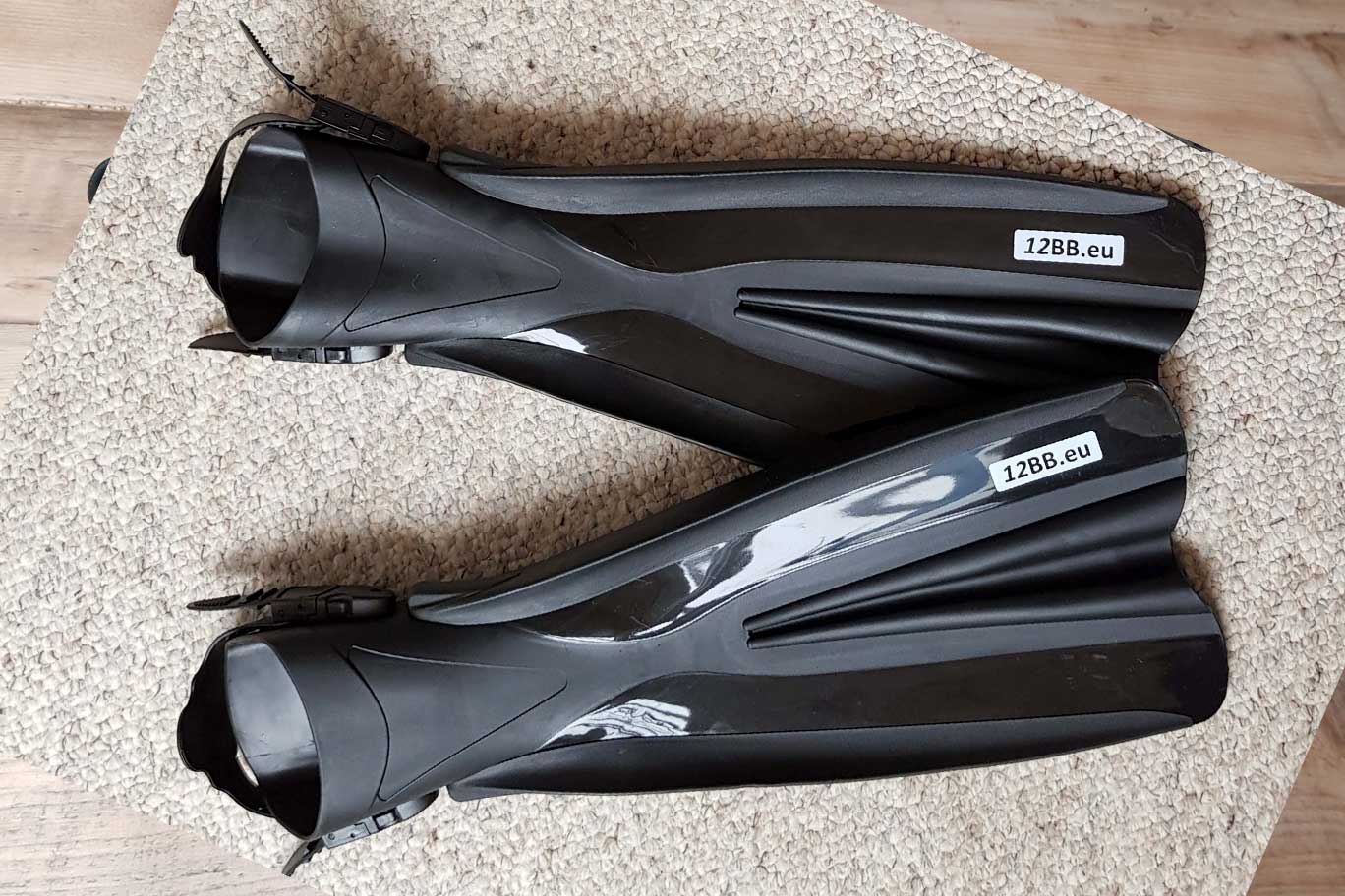 Aletas / aletas extralargas 12BB.eu, ideales para el belly boat, para distancias, velocidad y manteniendo la maniobrabilidad.