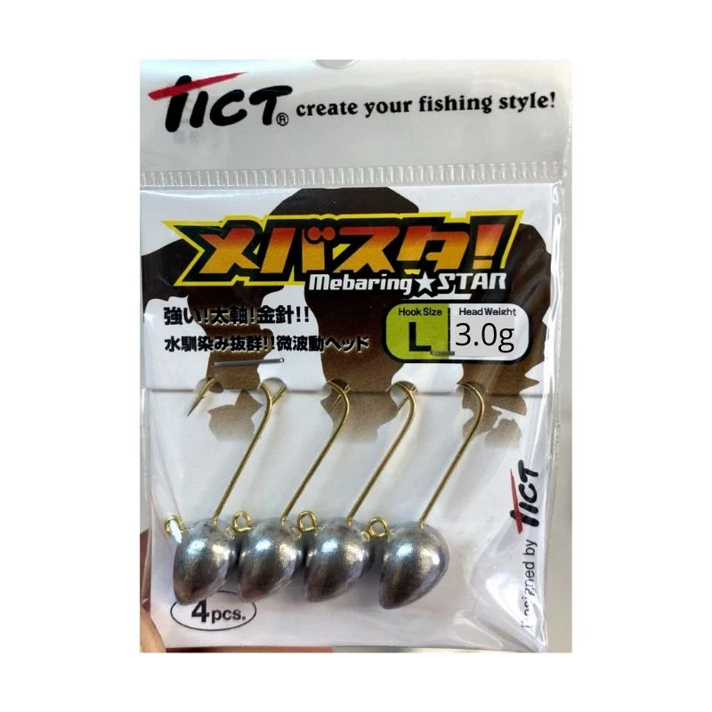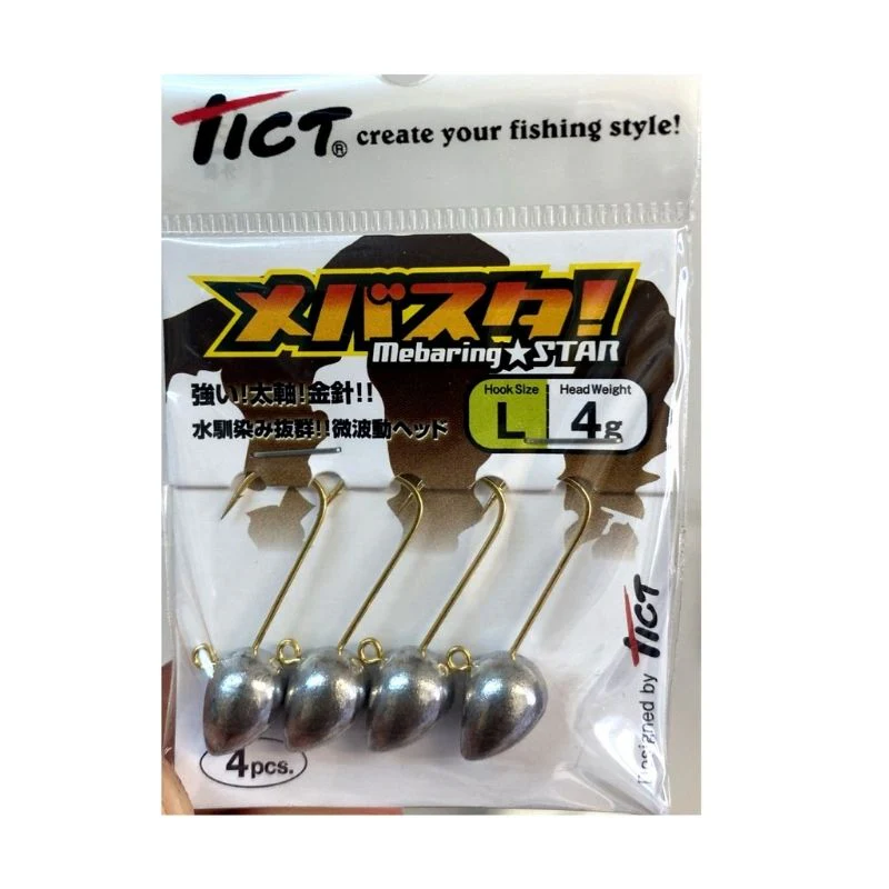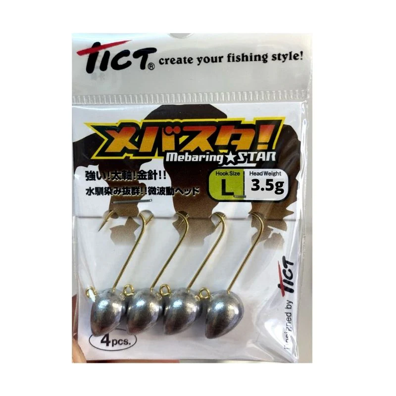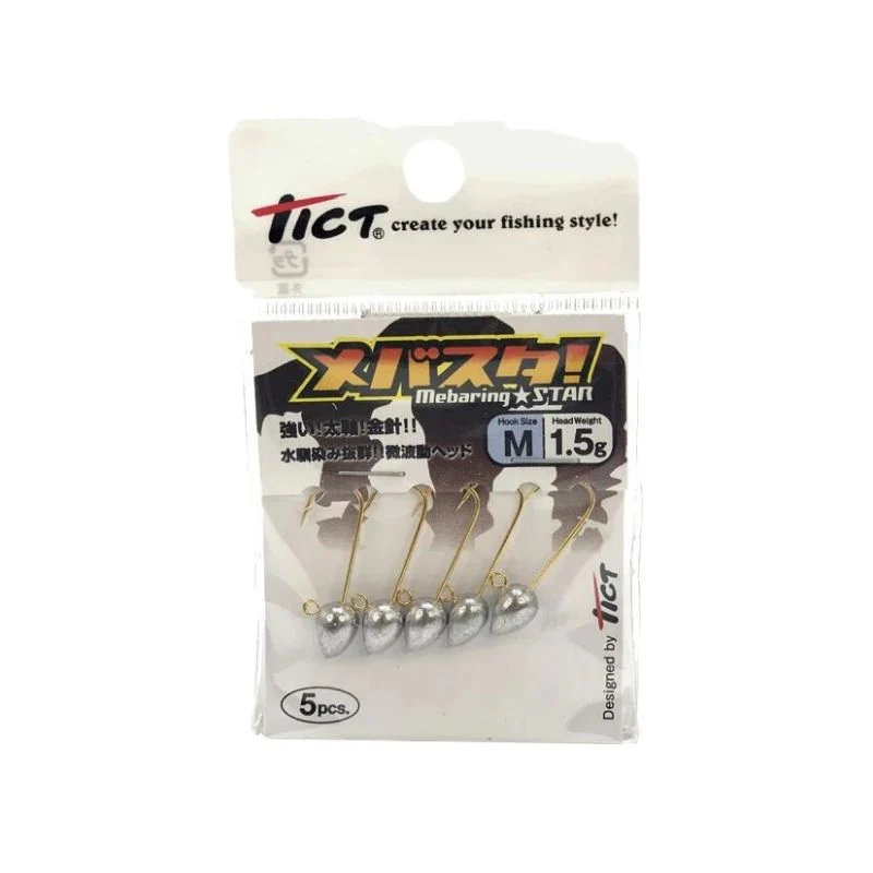 La cabeza plomada Mebaring Star de Tict es un producto japonés de alta calidad diseñado para ofrecer el máximo rendimiento en la pesca. Esta cabeza plomada tiene un diseño específico de la cabeza y un anzuelo original que la hacen muy interesante para los pescadores que buscan obtener el efecto de rolling necesario para que el vinilo se mueva con libertad, incluso en recogidas lineales.