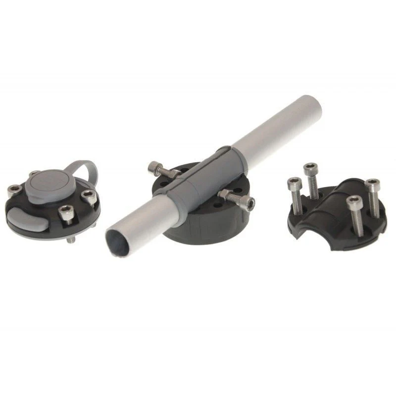 La Base BORIKA Fasten Negro es una base universal diseñada para montar y asegurar accesorios en tubos con diámetros entre 22 y 25 mm y 30 a 32mm. Ideal para instalar cámaras, cañeros y una amplia variedad de accesorios BORIKA en pasamanos, arcos de radar, consolas y otras superficies tubulares. Este soporte está equipado con tornillos laterales que aseguran la posición, evitando cualquier giro una vez apretados.