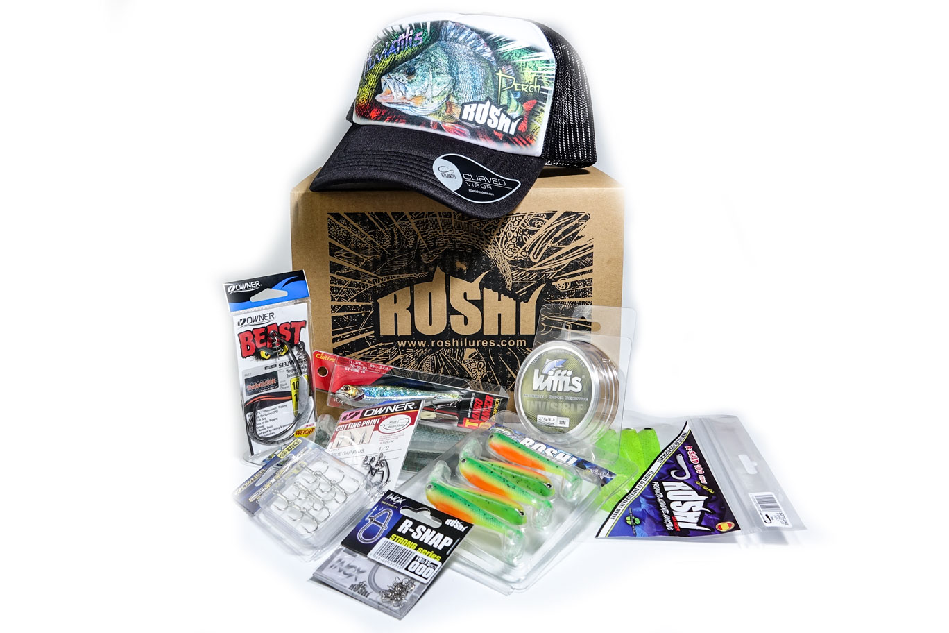 Dentro de la caja no vamos a desvelar su contenido, pero si podemos decir desde ya, que será material de primera como tenemos en nuestra web. Además totalmente GRATIS en el interior de la caja tendrás una gorra de su pez preferido 🙂