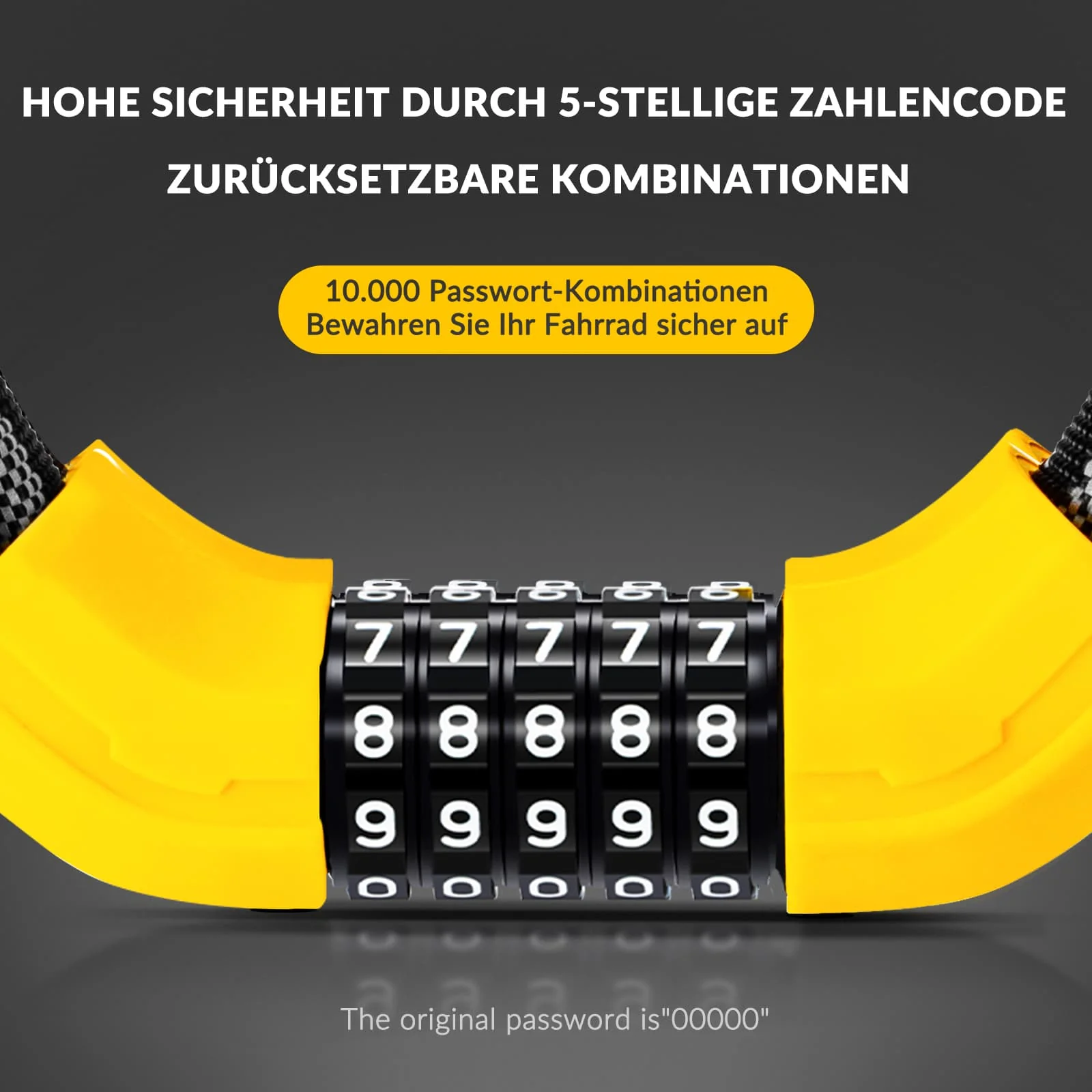 • Alto nivel de seguridad: Este candado para bicicleta está fabricado con cable de acero de 19 mm de grosor, lo que lo hace resistente a los cortes y excepcionalmente seguro.