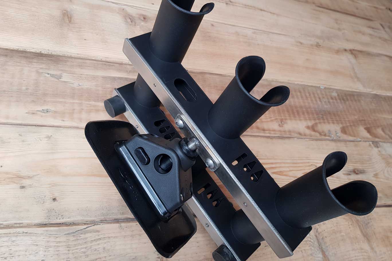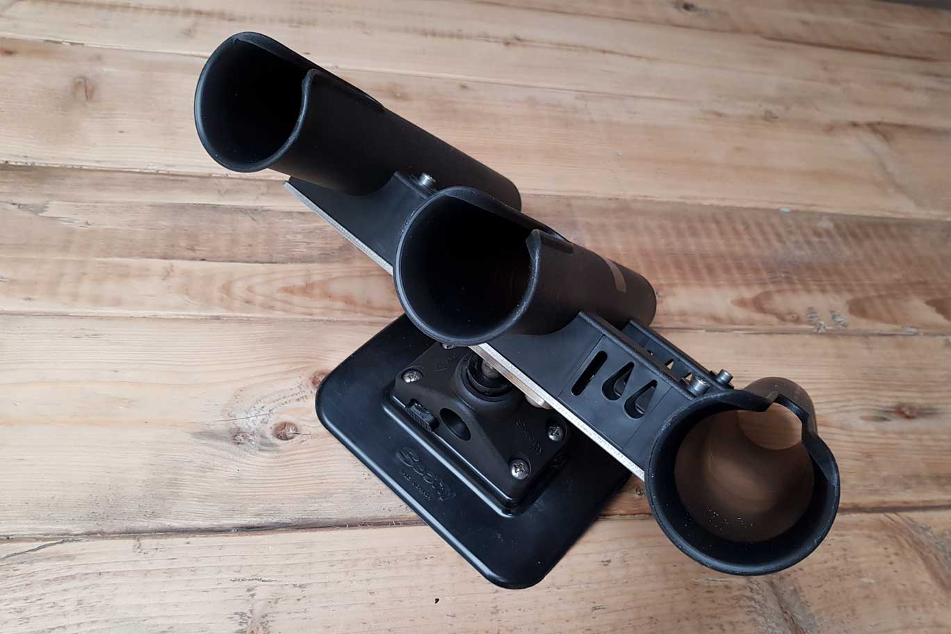 Cañero de 3 cañas, con accesorios de quita y pon. Un sistema muy cómodo, solo tendremos que pegar la base a nuestro pato y ya lo tendremos disponible. Nosotros recomendamos pegarlo con el pegamento BORIKA