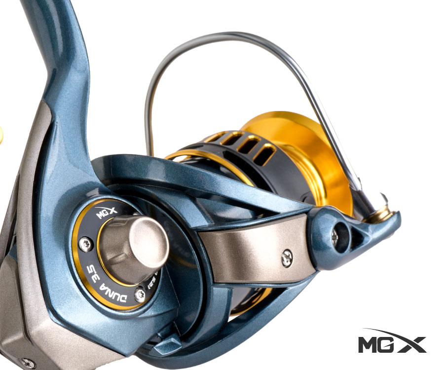 Es por ello que el carrete MGX Duna 3.5 es la mejor elección si estas iniciando en este deporte o cuentas con poco presupuesto para adquirir un carrete para agua salada, posee un cuerpo de grafito resistente y de alta durabilidad, bobina de aluminio anodizada, eje principal de acero inoxidable de 4.2mm, 6 + 1 rodajes de acero inoxidable sellados especialmente para el agua salada y bajo peso de 300gr, por ello nuestro carrete es “Salt water resistant” y la mayor ventaja es que cuenta con soporte técnico disponible, si deseas bobinas extras, manivelas, etc ya puedes conseguirlo.