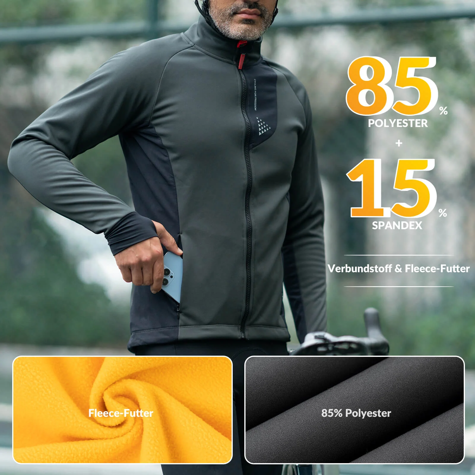 La chaqueta de ciclismo de invierno ROCKBROS para hombre ofrece protección contra el viento y transpirabilidad, además de un cálido forro polar para los días fríos en bicicleta o corriendo. Disponible en tallas M-4XL, es ideal para ciclismo de montaña o running.
