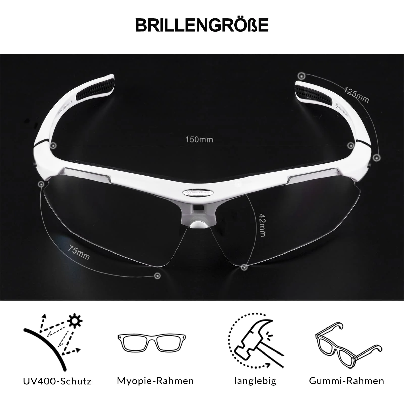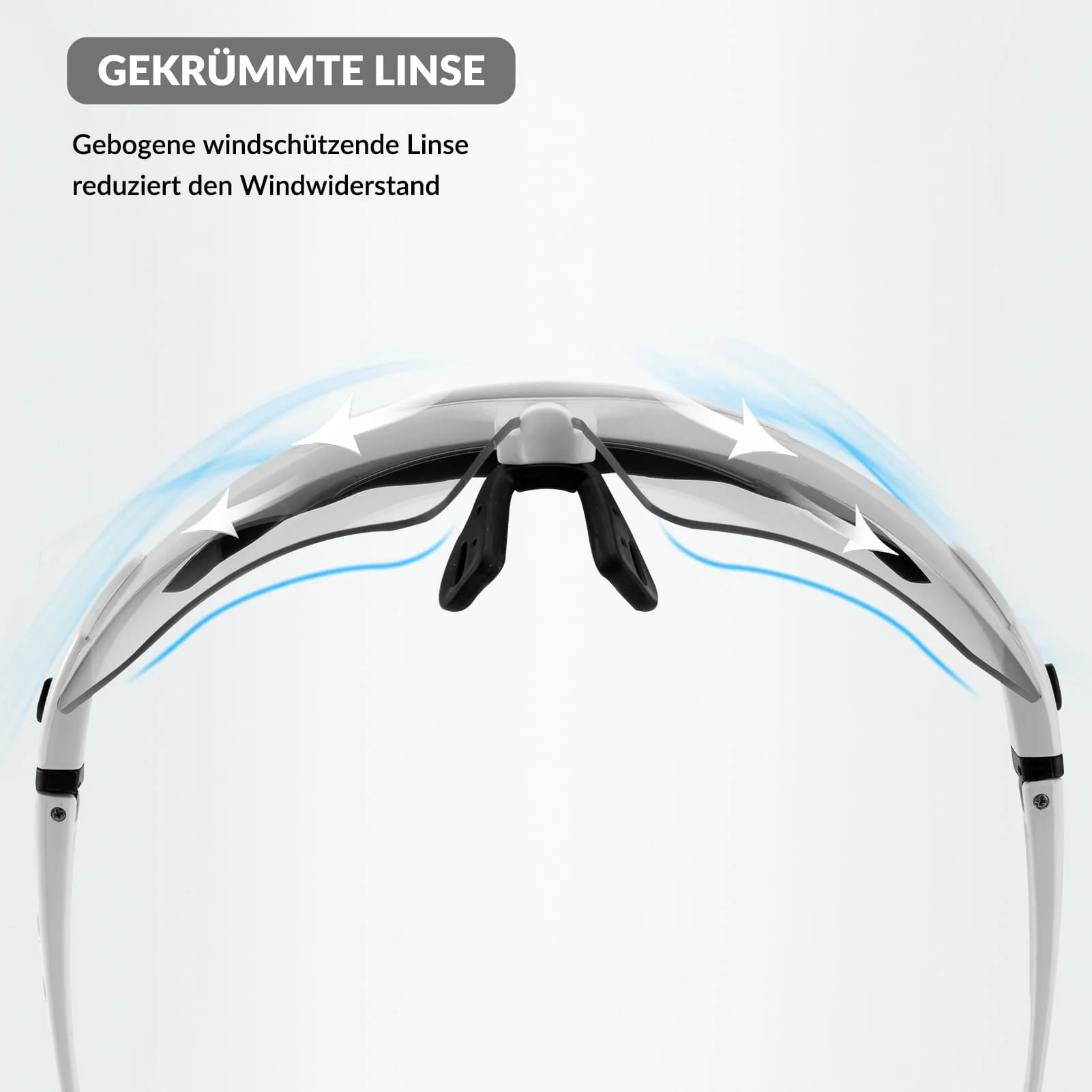 LENTES ULTRA FOTOCROMÁTICAS: Estas gafas de sol para ciclismo con lentes transparentes de policarbonato son muy claras en días nublados y se oscurecen según la intensidad de la luz solar y ultravioleta para proteger tus ojos de daños.