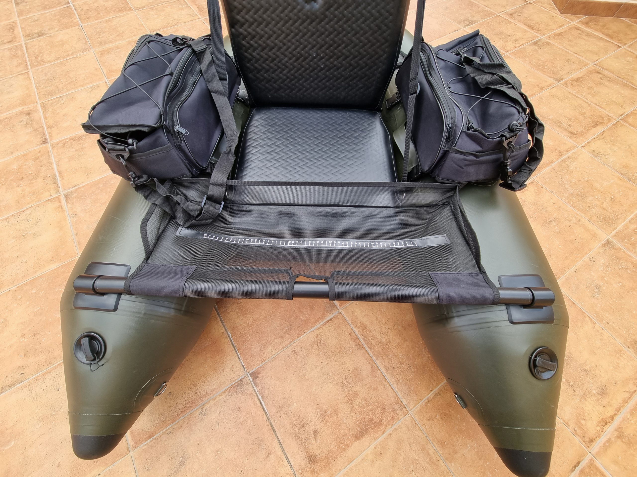 Además, el Belly Boat está equipado con dos bolsas de almacenamiento en ambos tubos con fijación de clip, una plataforma
