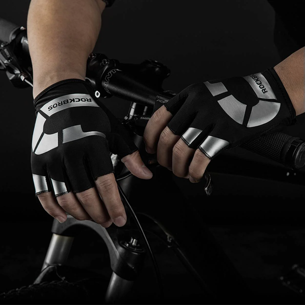 - Los guantes de medio dedo ROCKBROS con absorción de impactos SBR están equipados con almohadillas SBR en la palma.