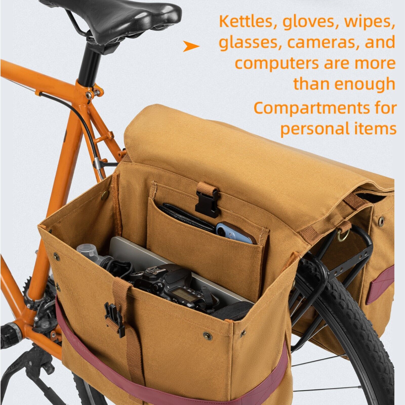 Optimiza tus salidas en bicicleta con la bolsa de alforja ROCKBROS, fabricada con algodón de alta calidad. Diseñada para ciclistas que buscan comodidad y funcionalidad, esta bolsa tiene una capacidad de 27 litros, ideal para llevar todo lo necesario en tus rutas. Sus medidas de 35 x 14 x 30 cm la hacen perfecta para mantener un perfil compacto, sin sacrificar espacio.