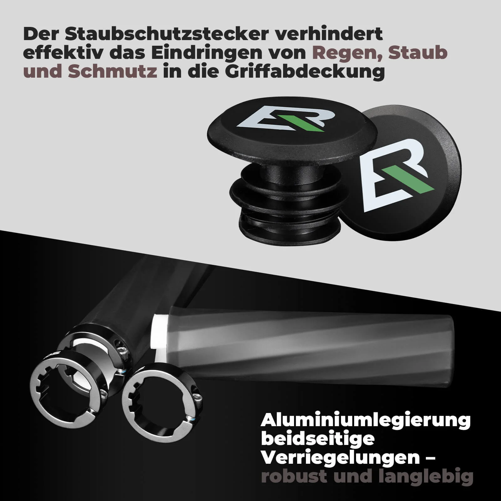 Simplemente retire los puños viejos, inserte el conector en el puño y apriete los tornillos con la llave Allen de 3 mm incluida. Fije los bordes firmemente a la bicicleta.
