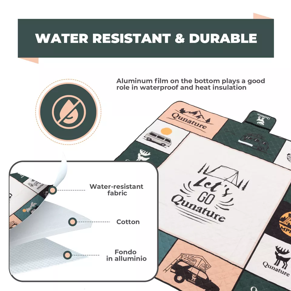 Qunature Manta de Picnic 200x200cm Manta de Camping Estera de Picnic Impermeable al Aire Libre