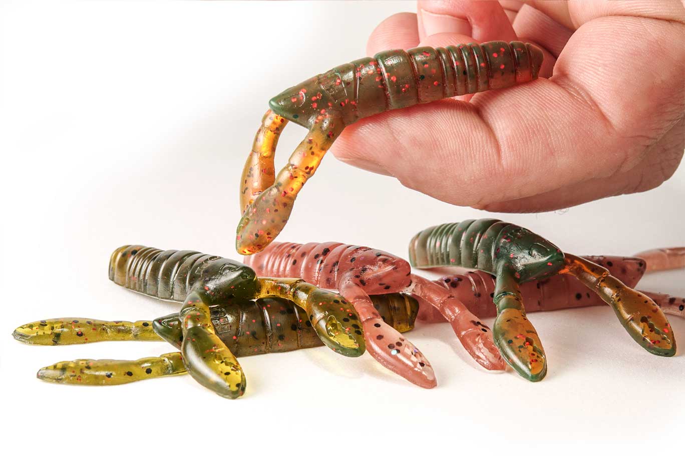 Si bien queríamos un cangrejo natural y discreto, con pinzas pequeñas, el cuerpo no iba a ser menos, partimos de un cuerpo con estrías para dar una mayor flexibilidad. Se trata de un auténtico caramelo para los depredadores, está pensado para buscar peces tipo de agua dulce como pueden ser barbos, carpas, blackbas, luciopercas… Pero sin dejar de lado que puede depararnos muchas alegrías en agua salada rascando fondo. Obtendremos el interés de peces como lubina, pequeños meros, cabrillas, serranos…