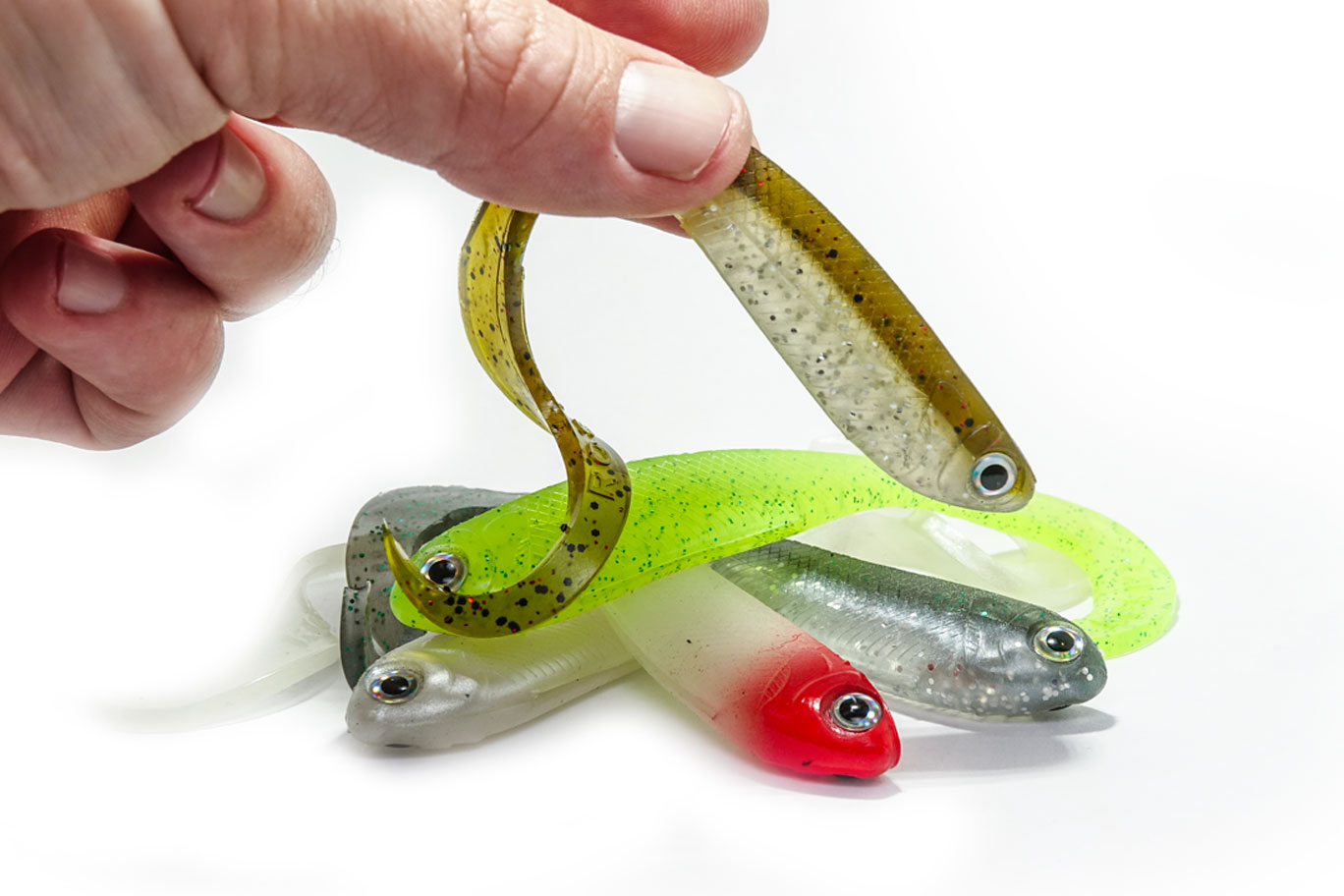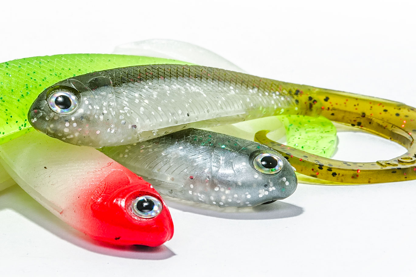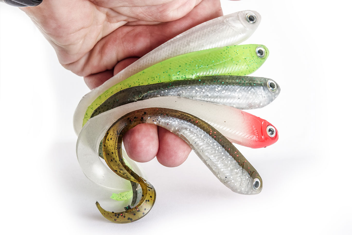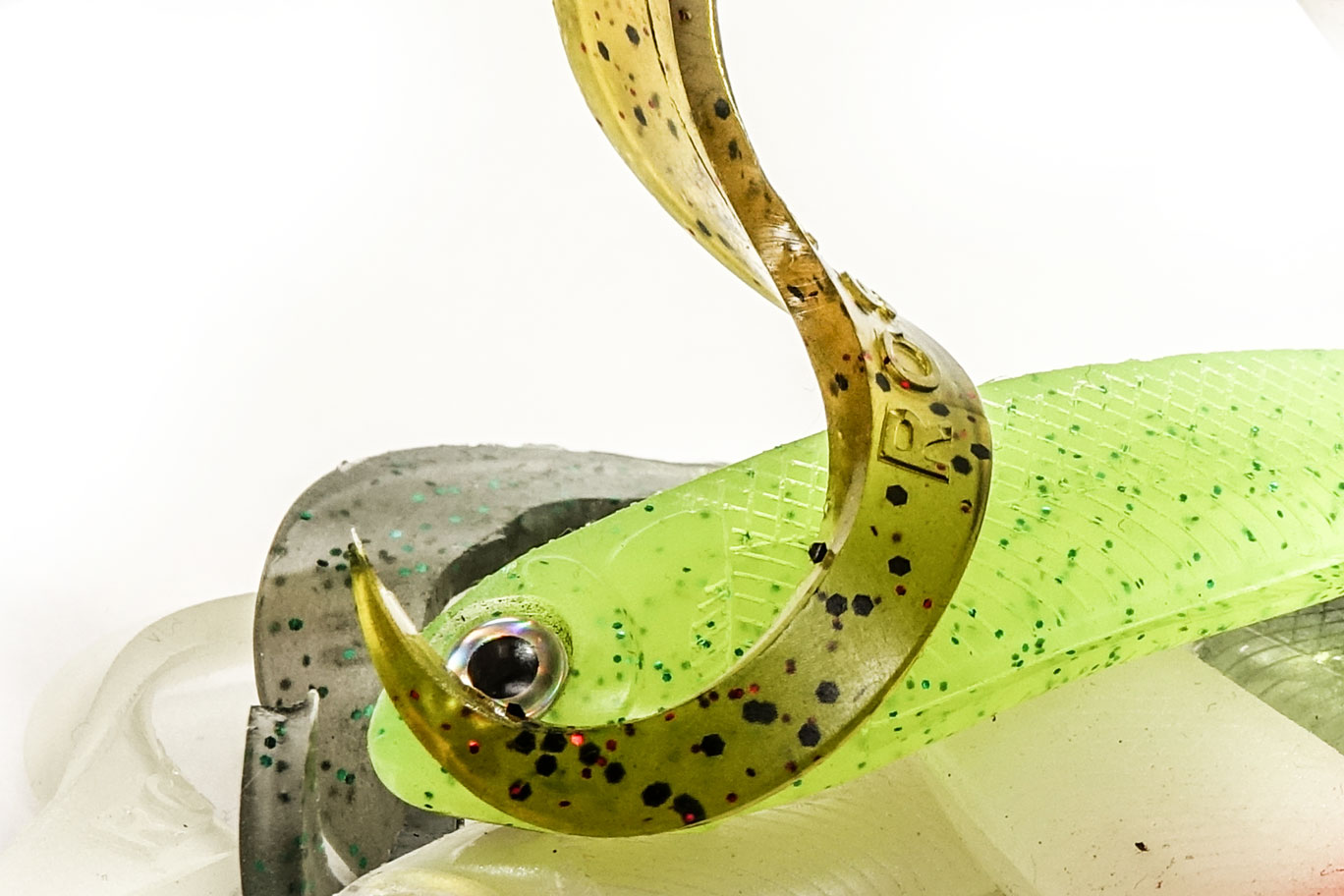 La forma en la que hemos diseñado el señuelo R-SHAD 100 curly, ni mucho menos ha sido casualidad, hay mucho trabajo, tiempo y esfuerzo detrás de cada señuelo ROSHI, hemos tenido en cuenta varios conceptos como pude ser la forma del cuerpo, textura, detalles realistas y como no… La cola, parte fundamental para el movimiento de un tipo anguila con vibraciones muy naturales. La cola tiene unas dimensiones perfectas para realizar el movimiento que buscamos, y es que si alguna vez has tenido un R-SHAD al otro lado de la línea, sabrás que se mueve a muy baja frecuencia de recogida. Esto es algo muy positivo ya que cuando estamos buscando peces por el fondo, más apáticos, aletardados… Es un extra a tener en cuenta que nuestro señuelo mueva con una recogida lenta o muy lenta.