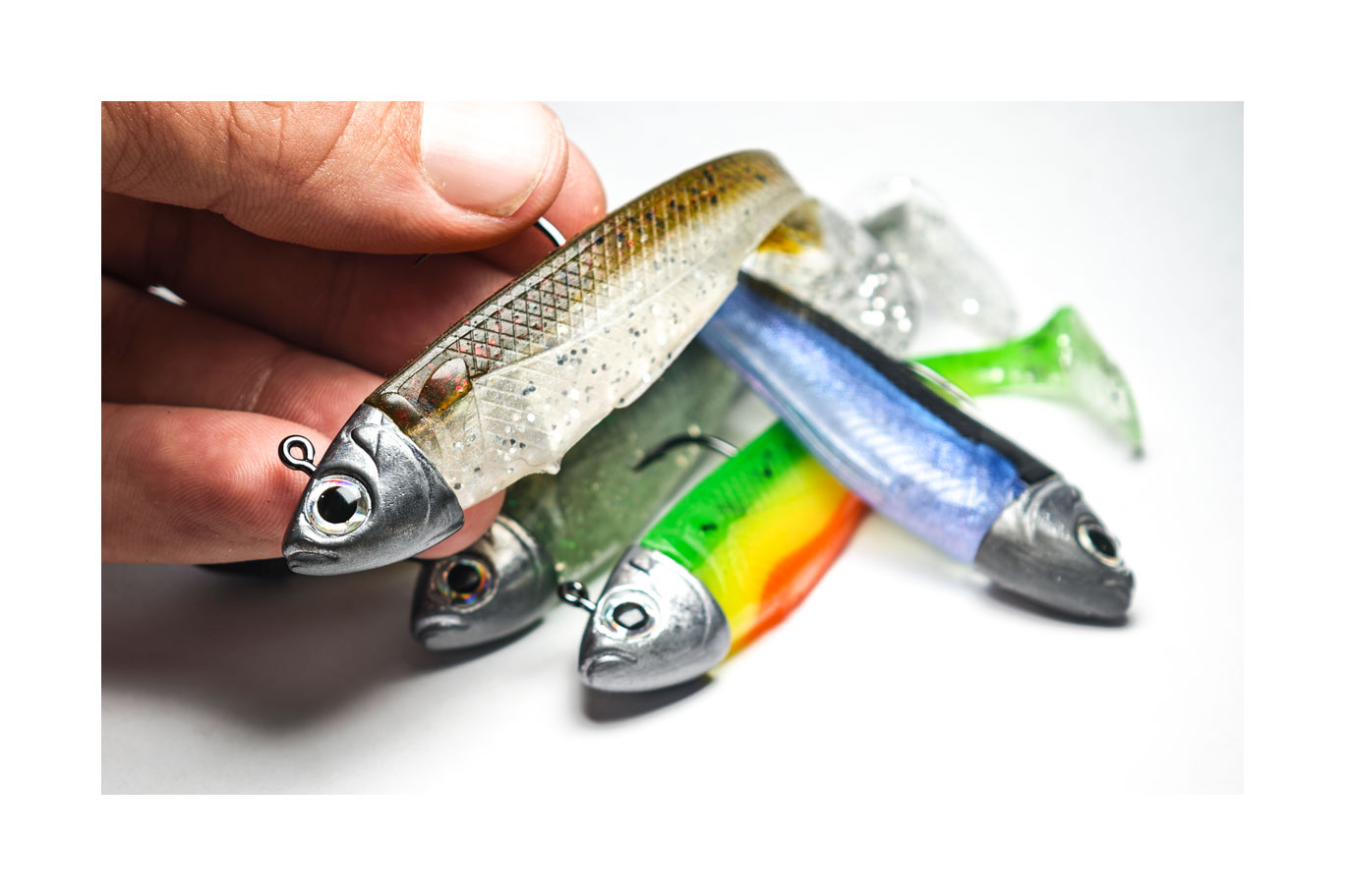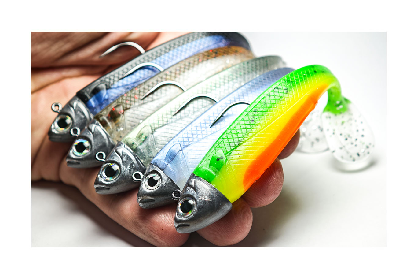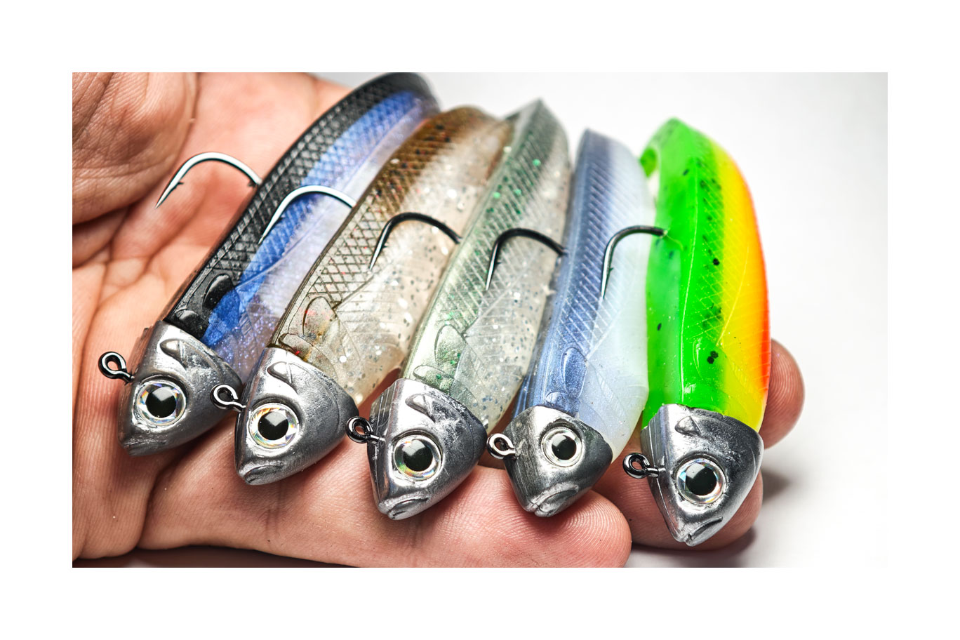 Red Head, Jamaikeño, Boomer, Lime, BlueShad, Boqueronako, Real Fish, Rainbow, 5 Jotas, Magic Brown, Pearl White.