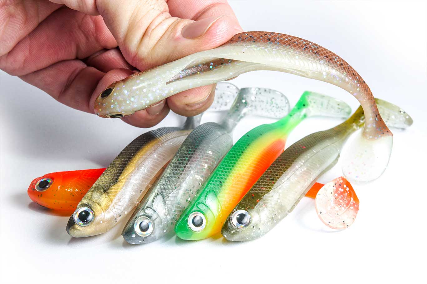 La forma en la que hemos diseñado el vinilo de pesca R-SHAD, tanto en tamaño 130 como en las demás variantes, ni mucho menos ha sido casualidad, hay mucho trabajo, tiempo y esfuerzo detrás de cada señuelo ROSHI, hemos tenido en cuenta varios conceptos como pude ser la forma del cuerpo, textura, detalles realistas y como no… La cola, parte fundamental para el movimiento de un swimbait tipo shad. La cola tiene unas dimensiones perfectas para realizar el movimiento que buscamos, y es que si alguna vez has tenido un R-SHAD al otro lado de la linea, sabrás que se mueve a muy baja frecuencia de recogida. Esto es algo muy positivo ya que cuando estamos buscando peces por el fondo, más apáticos, aletardados… Es un extra a tener en cuenta que nuestro señuelo mueva con una recogida lenta o muy lenta.