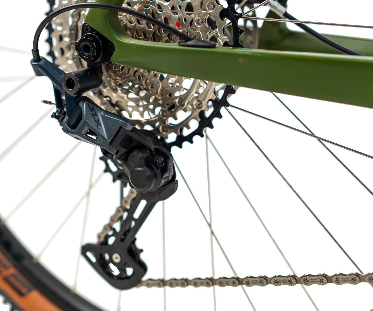 La RINOS Gaia 4 Carbon MTB, una bicicleta de montaña ligera y potente, es perfecta para los entusiastas del cross-country. Cuenta con un impresionante diseño verde oscuro, un resistente marco de carbono TORAY T800 y una horquilla FOX 32 Rhythm Remote de alta calidad para hacer frente a diferentes tipos de terreno. Adecuada para ciclistas con alturas entre 176 y 195 cm y con un peso de solo 10,8 kg, ofrece un viaje suave con un sistema completo de 12 velocidades Shimano SLX M7100 y frenos de disco hidráulicos Shimano fiables. Sus neumáticos Schwalbe 29×2,25 ofrecen un excelente agarre, lo que la convierte en una excelente opción para diversas aventuras al aire libre.