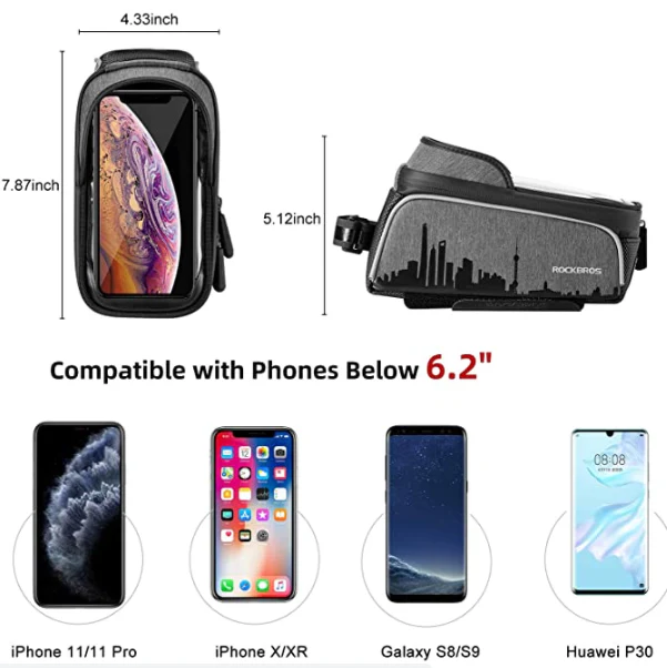 Con unas dimensiones de 19.5 * 10.5 * 7.5cm. Proporciona espacio suficiente no solo para su teléfono, sino también para cargadores, herramientas, mini bomba de aire, etc. Perfectamente compatibles con teléfonos de menos de 6,5 pulgadas, iPhone XR XS MAX X 8 7 6S / SAMSUNG GALAXY S8 S7 Note 7.