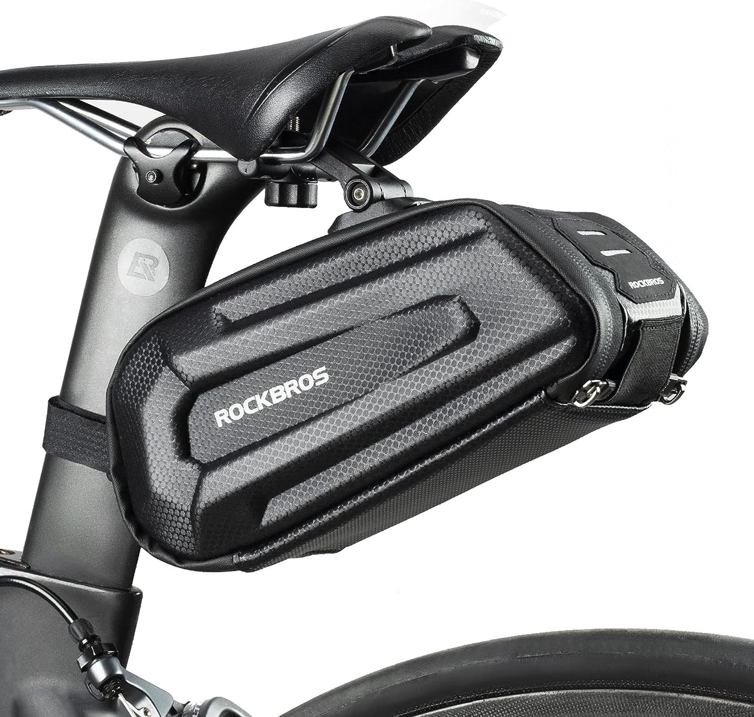 Hay una luz en la parte posterior de la bolsa de asiento de bicicleta para colgar en caso de no poseer una luz trasera, el logo reflectante garantiza la seguridad cuando se monta por la noche o en espacios oscuros.