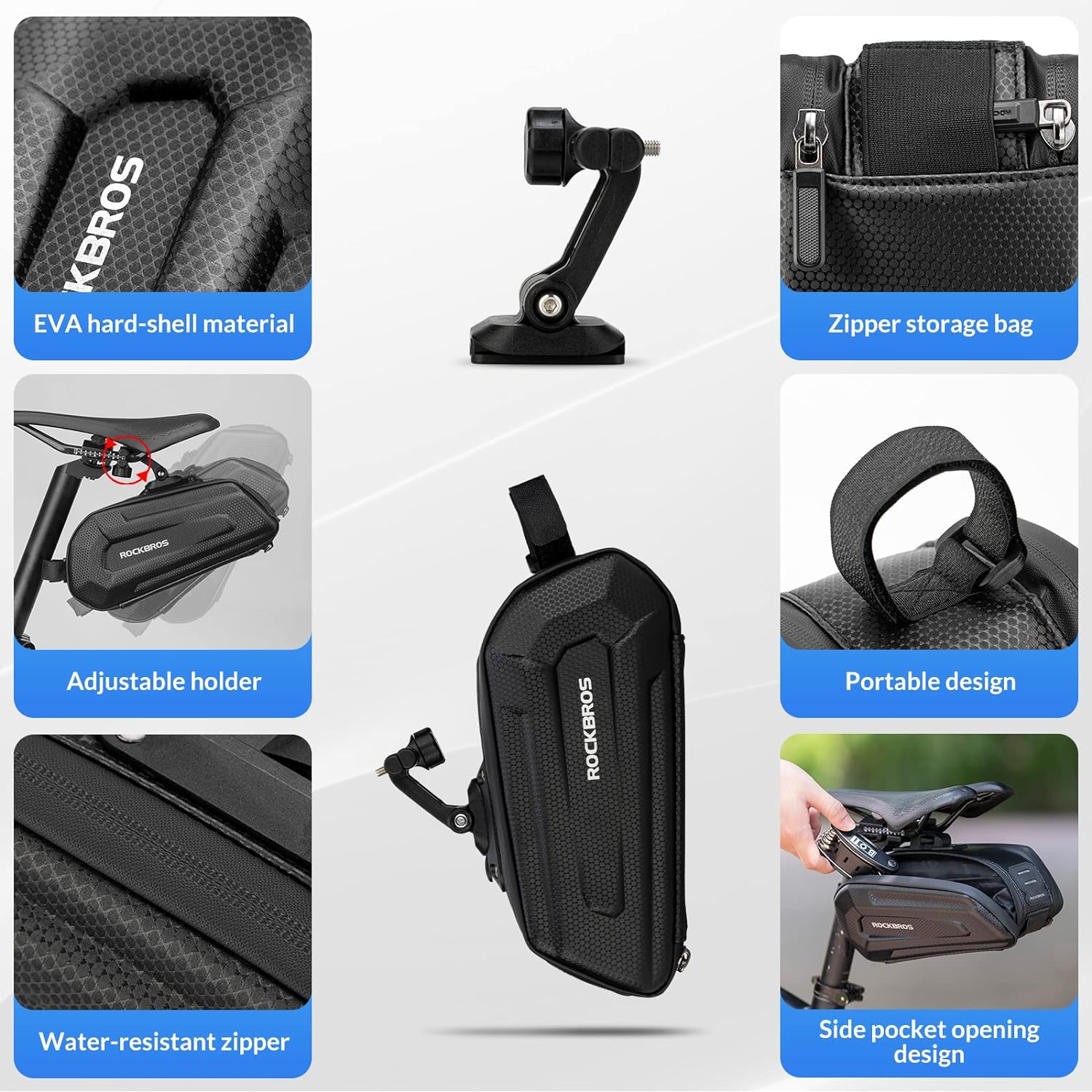 La bolsa de bicicletas tiene suficiente espacio de almacenamiento para el celular, billetera, herramientas, mini bomba de aire entre otras. El bolsillo de malla interna es adecuado para pequeños objetos como tarjetas de crédito o llaves. Mantiene todo en buen estado con alta seguridad.