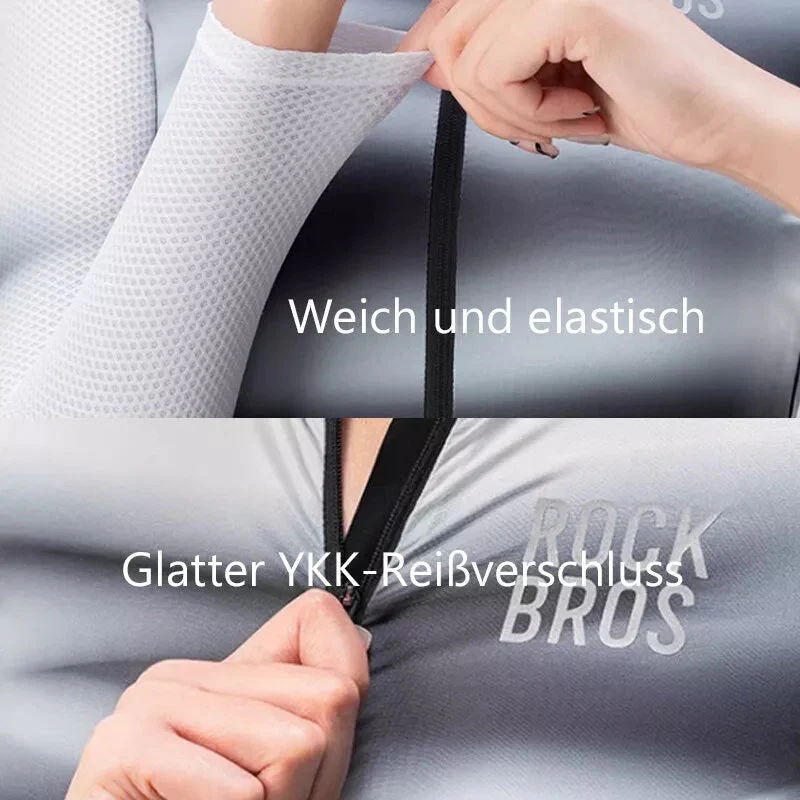 Transpirable y antideslizante: El maillot ciclista está confeccionado en tejido transpirable con malla tridimensional que acelera la circulación del aire. El dobladillo está equipado con material antideslizante y la suave cremallera YKK contribuye a una comodidad eficaz durante la conducción.