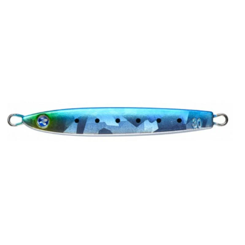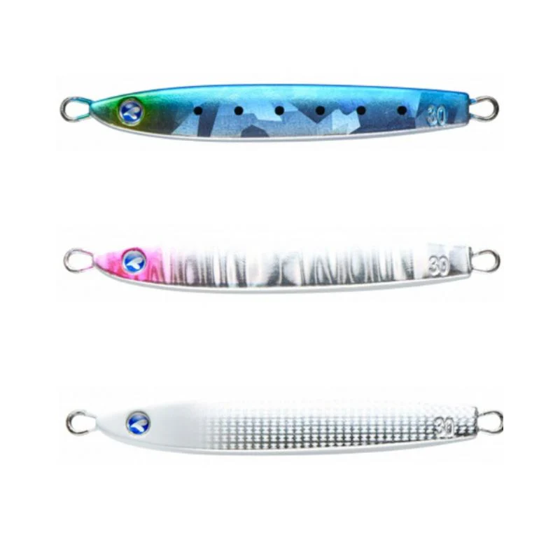 Señuelo Blueblue Fallten,Jig metálico para pescas al lanzado o en vertical. Gracias al mayor reparto de peso en la zona de la cola, se lanza muy lejos y profundiza además a una gran velocidad, evitando que salga a la superficie cuando recogemos en pescas desde altura. Viene montado con un assist simple delantero y un triple trasero.