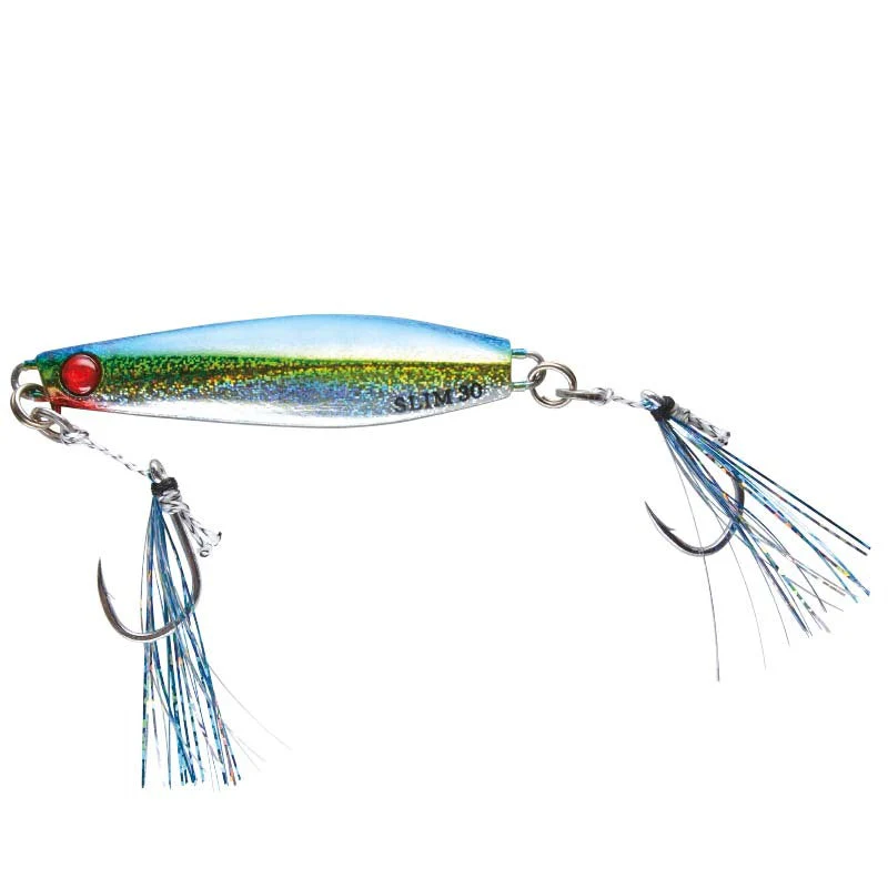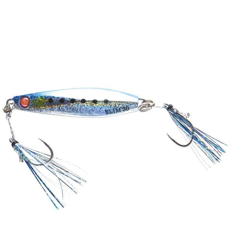 El nuevo Jack Eye shot slow slim tiene una altísima capacidad de lance gracias su centro de gravedad retrasado y su diseño Slim body, que a su vez ofrece un movimiento wobbling estable y continuo, capaz de cubrir con eficiencia largas extensiones de agua. El montaje con un doble assist previene la pérdida de un pez tras un segundo ataque. La librea holográfica asimétrica y los anzuelos sabiki, proporcionan un eficiente efecto atrayente para los peces. Los anzuelos están bañados con una capa anticorrosión que alarga su vida útil y mejoran la capacidad de penetración incluso a largo plazo. El cuerpo de metal está doblemente protegido frente a golpes ya arañazos con una doble capa protectora.