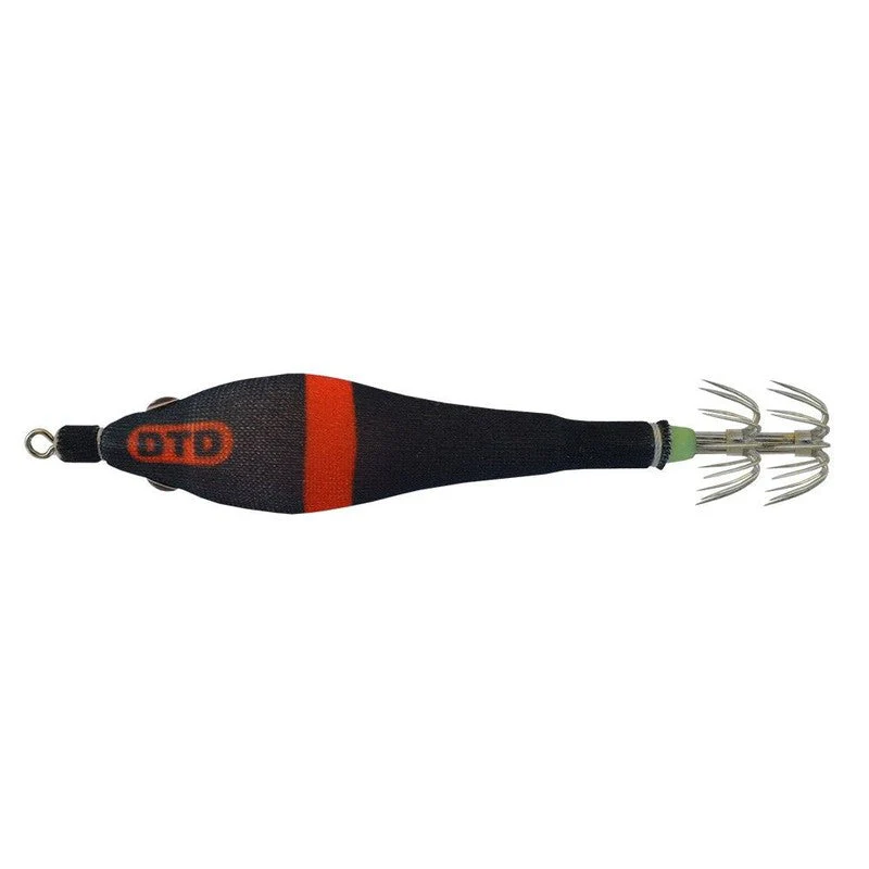 El Señuelo DTD Black Diablo es una herramienta de pesca especializada para la captura de calamares y sepias, ideal para utilizar en aguas claras. Su diseño combina una mezcla de colores negro y rojo, proporcionando un alto contraste que resulta muy efectivo en atraer a los cefalópodos en condiciones de alta visibilidad.