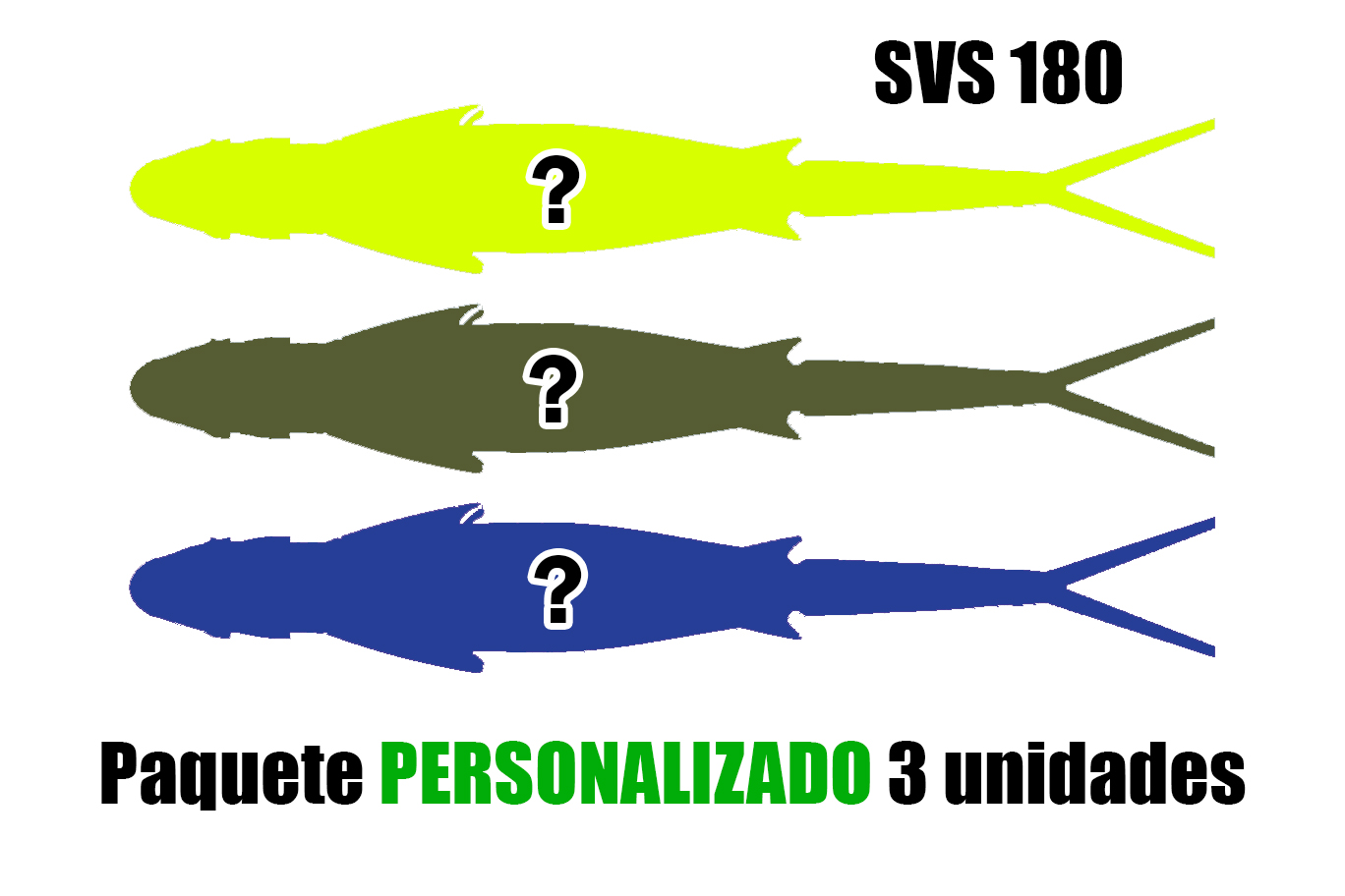 Te gustaría elegir el color de tus señuelos de forma individual? Ahora puedes!!! Podéis crear vuestro propio paquete! Al gusto! Haz tu propio paquete! Elige 3 colores y ese será tu paquete personalizado de SVS 180.