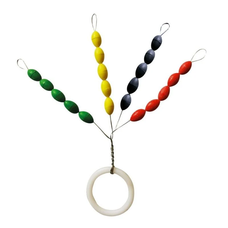 Stoppers barril de silicona multicolores en ristra, para fijación de cametas en bajos de línea.