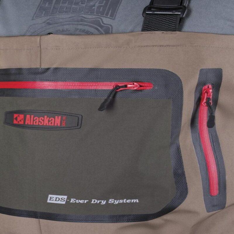 El clásico vadeador Adventure con corte anatómico ha recibido un diseño tecnológico actualizado esta temporada. El bolsillo de parche en el pecho ha sido reemplazado por uno grande pegado, y se han agregado dos bolsillos laterales con cremallera impermeable. Las correas elásticas se equiparon con hebillas planas. Se utiliza una membrana AERO-TEX de 3 capas para la parte superior de los vadeadores y una membrana de 5 capas para las piernas