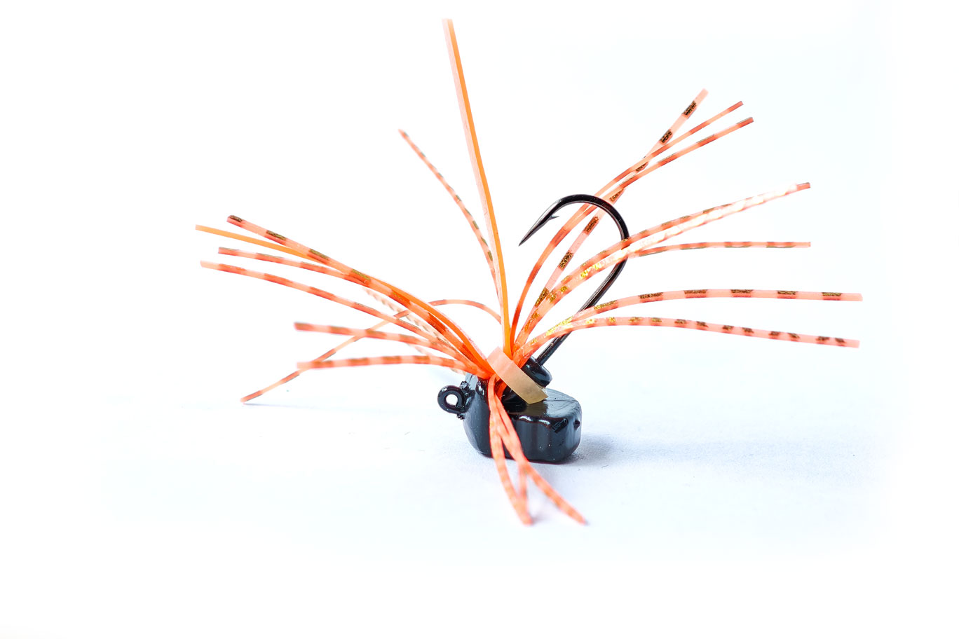Se trata de un «JIG«. 7gr. Y sí! Ya es una realidad, es que no deja de ser un jig con «pelos» pero con un diseño innovador, y es que como podéis ver en su forma y posición. Lo que hace aun más tentador para los depredadores…