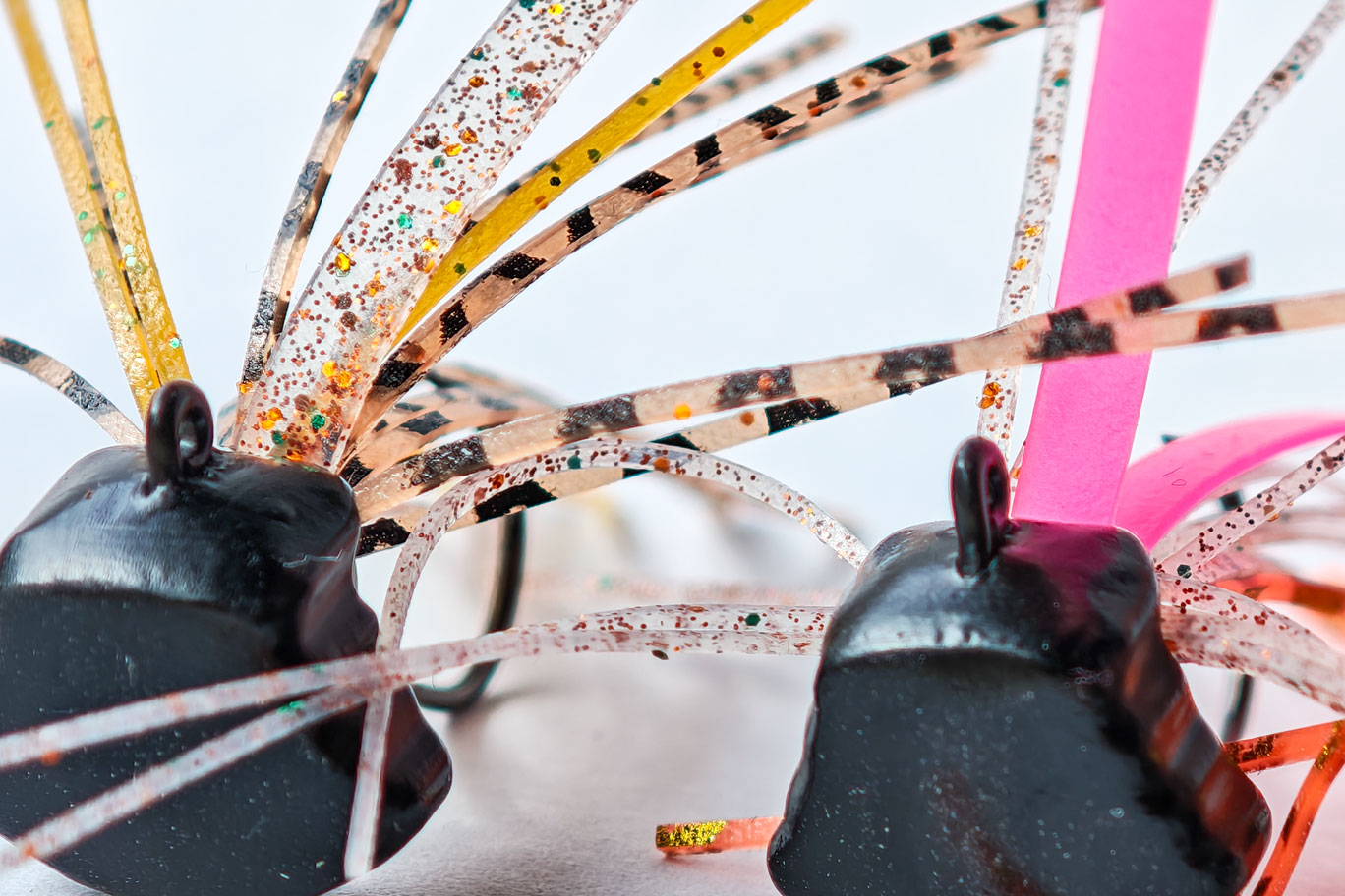 Un diseño muy mimado, siempre pensando en innovar lo máximo posible dentro de la gran variedad de señuelos que ya tenemos en el mercado. Pero lo hemos conseguido, hemos hecho un «jig de blackbas» con posicionamiento shaky. No hemos querido hacerlo muy poblado de «pelos», incluso dependiendo la especie a por la que querramos pescar recomendamos hacerle algún retoque, tipo cortar un poco los pelos.